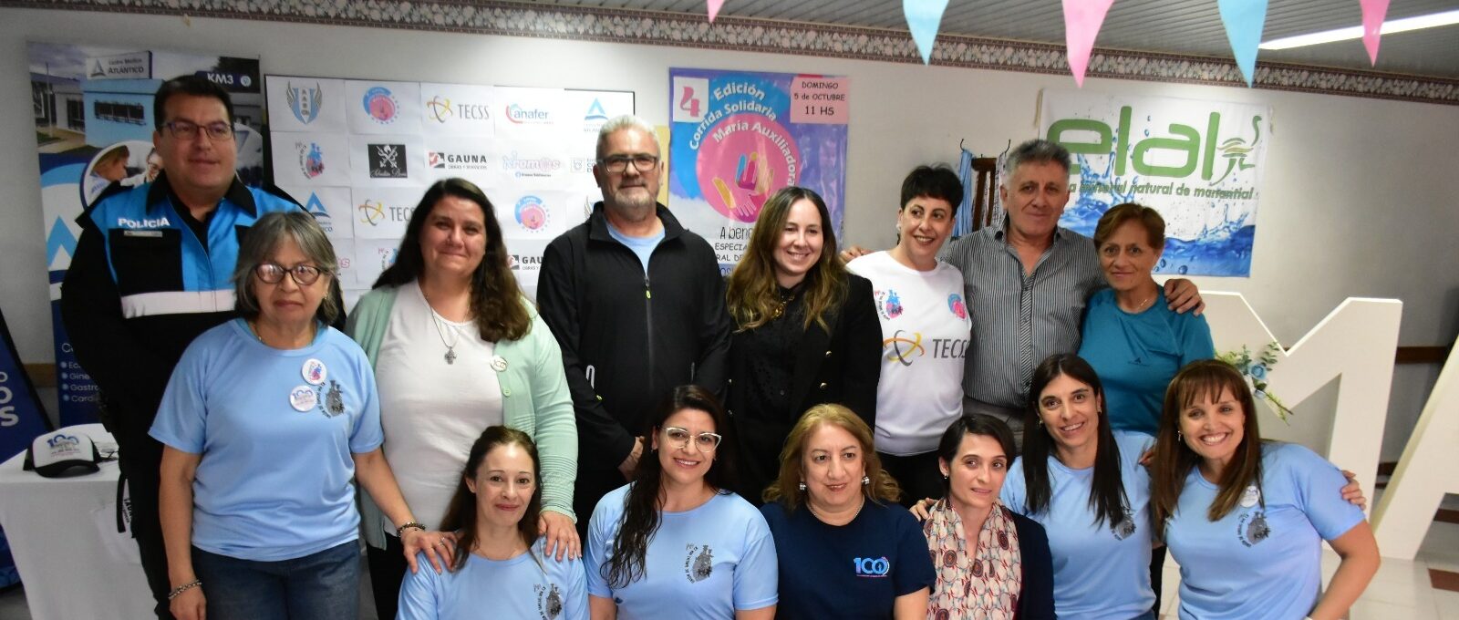 En la presentación oficial de la 4ta. edición de la Corrida Solidaria del Colegio María Auxiliadora, estuvieron: Hernán Martínez, presidente de Comodoro Deportes, Carolina Otero, directora general del Instituto María Auxiliadora, Miriam Albornoz, representante de la Unión de Familias IMA, Fabiola Arteola, representante de la Unión de Familias IMA, Silvia Pino y Betiana Solís, ambas referentes de CESIA, junto con Ramón Flores, presidente de la Asociación Chubutense de Atletas Master.